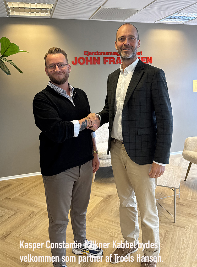 – Kasper har på kort tid vist et imponerende engagement og stærkt lederskab. Han er drevet af oprigtig interesse for kunderne og en høj faglighed – præcis de værdier, som kendetegner John Frandsen. Partnerskabet er et naturligt næste skridt, og jeg ser meget frem til fores fortsatte rejse på Fyn, udtaler Troels Hansen, ligeledes partner i Ejendomsmæglerfirmaet John Frandsen
