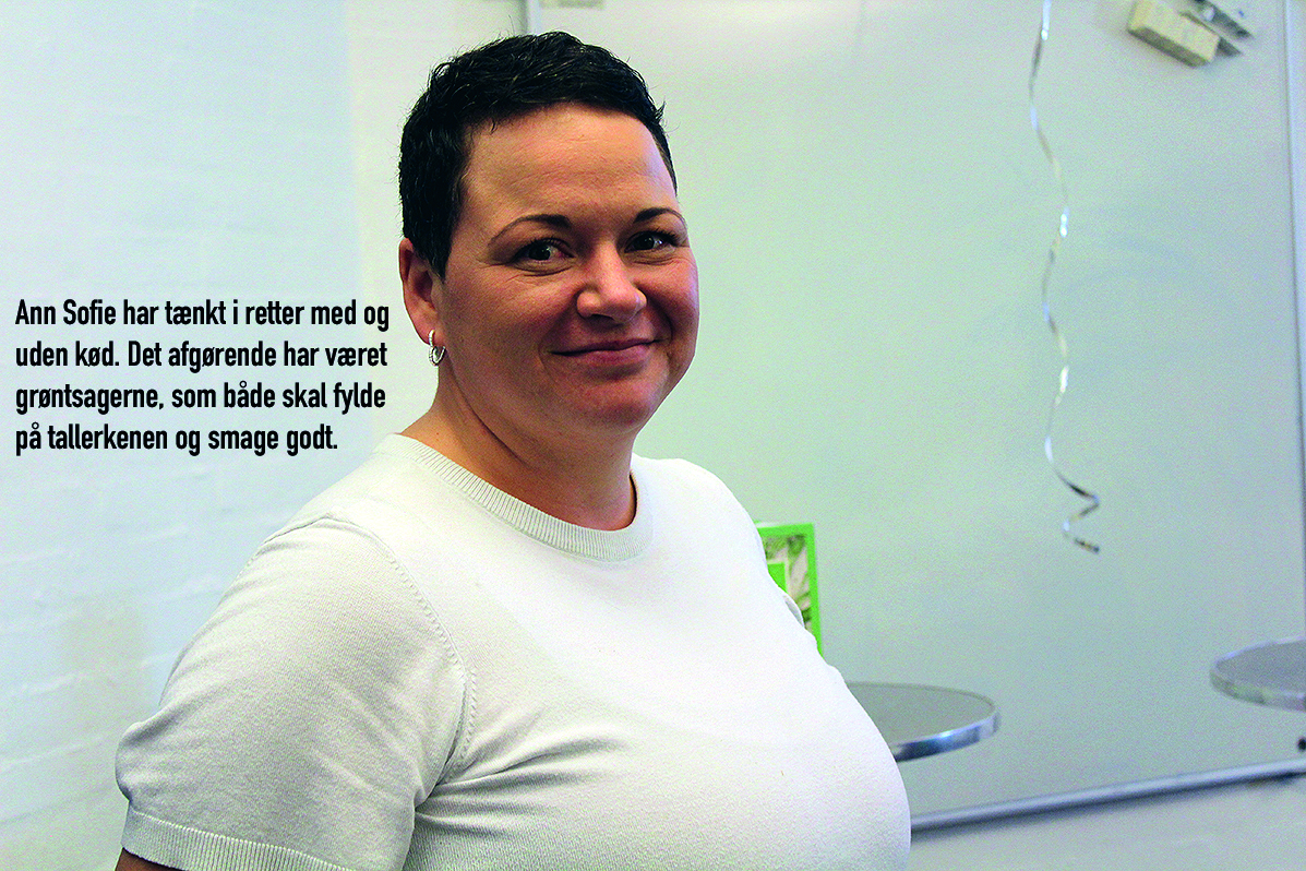 Hun fortalte, at hendes udgangspunkt er grøntsager, for de skal fylde halvdelen af tallerkenen og de skal smage godt, fortalte hun. Om der også kommer kød og fisk på tallerkenen er en mulighed, men ikke i alle tilfælde.