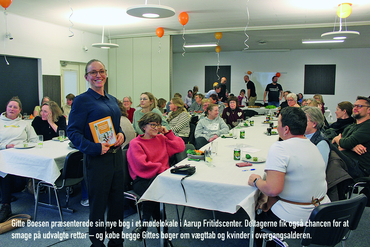 Gitte Boesen frygtede – fortalte hun Folkebladets reporter – at stå alene i et mødelokale med plads til over 100, da vejrudsigten begyndte at love snestorm og bitter kulde lørdag den 10. januar. Den lørdag, hvor hun havde indbudt til præsentation i Aarup Fritidscenter af sin nye bog ”Sunde vaner i overgangsalderen. Men frygten blev gjort til skamme, for der var fyldt godt op i mødelokalet – ja selv enkelte mænd havde fundet vej til fritidscenteret.