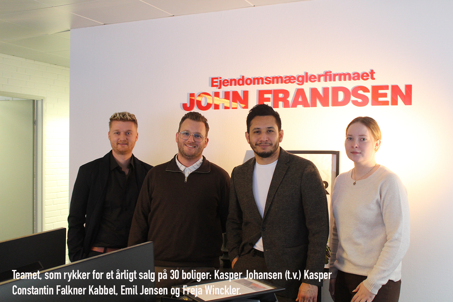 – Vi har det første år formidlet 24 handler og foretaget 100 vurderinger. Målet var og er, at vi skal give overskud efter to år, hvilket vi vil nå med 30 handler. Så det mål er vi altså tæt på at have opfyldt efter et år, siger Kasper, som i dag står i spidsen for en samlet medarbejderstab på seks i de to fynske boligafdelinger.