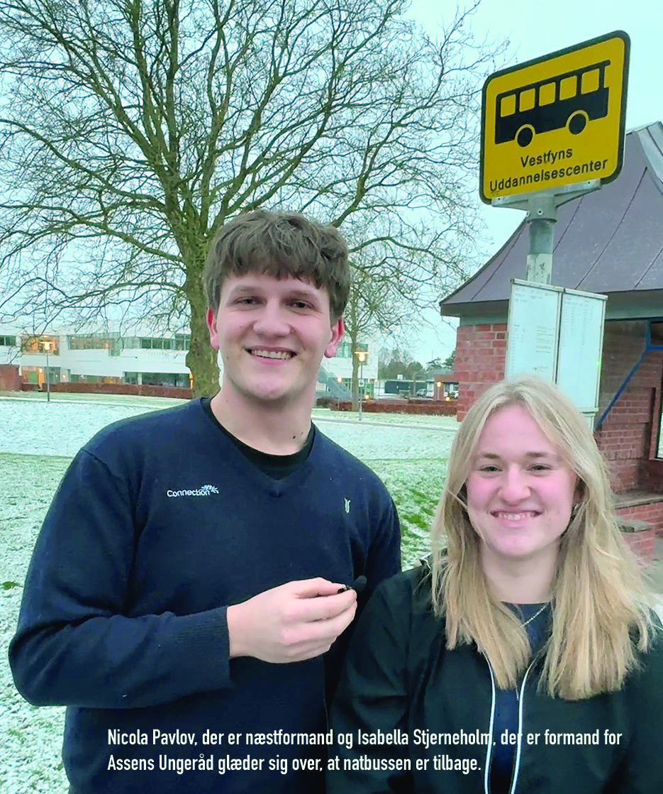 – Vi synes, det er megagodt. Det er noget, vi har kæmpet meget for på egne af de unge. Det er så fedt, at det nul sker, og at de unge faktisk får mulighed for at komme hjem for eksempel fra Odense, eller at de kan deltage og komme hjem fra arrangementer på uddannelserne, som ofte foregår om aftenen, siger Isabella Stjernholm, der er formand for Assens Ungeråd.