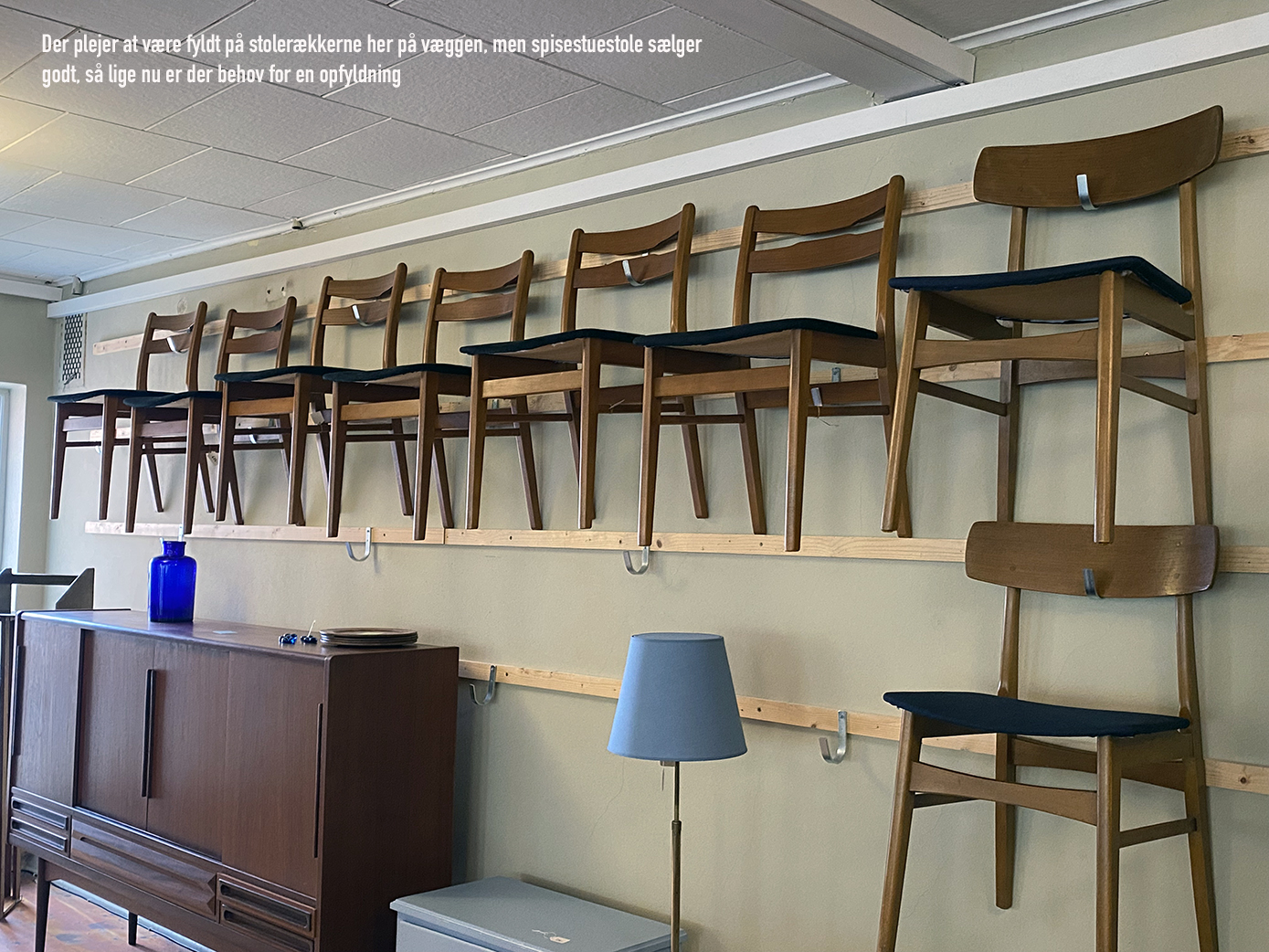 Siden begyndte de også at købe brugte møbler, tog dem hjem og satte dem i stand og solgte dem videre. I dag er Instagram, Facebook og deres hjemmeside udstillingsvinduet, side om side med butikken i Brylle, hvor de holder åbent den første weekend i hver måned.