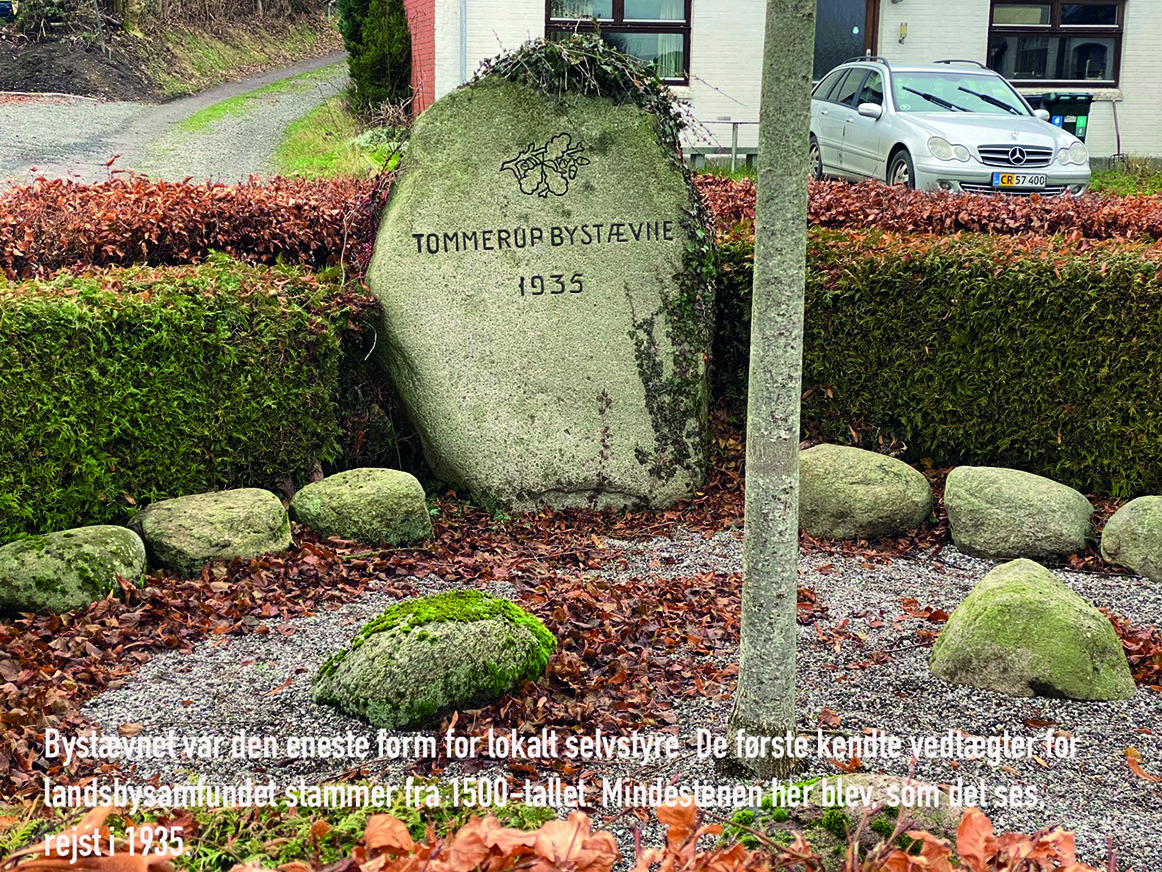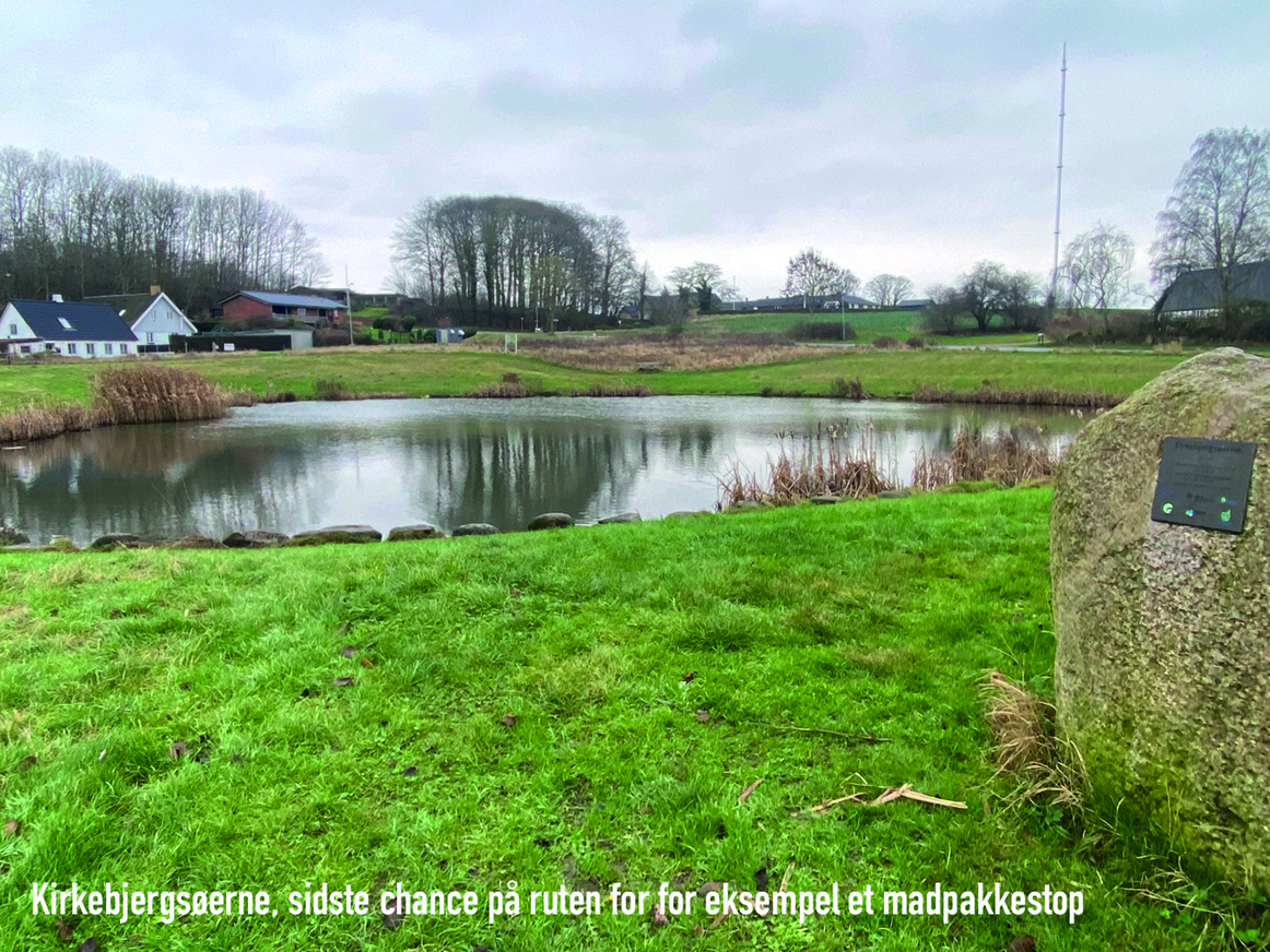 Fra Krengerupvej når vi ud på Kirkebjerg, der som navnet antyder leder til kirken på toppen af bakken. Nu er vi i noget af det ældste Tommerup, som man antager voksede op langs Kirkebjerg, Smedegyden og Bystævnevej. Man kan vælge at tage en afstikker helt op til kirken, en middelalderkirke med rødder i 1200-tallet, men jeg følger pilene, som fører mig ad Bystævnevej og hurtigt igen til højre ad Smedegyden. Inden da har jeg passeret Kirkebjergsøerne, et naturområde, der er blevet til i et samarbejde mellem Assens Forsyning, kommunen og lokalområdet. Samtidig med, at der blev etableret et par regnvandssøer og åbnet et vandløb, Rævedamsløbet, fik lokalområdet også et nyt rekreativt område med bålhytte, plads til leg og til at gå en tur med hunden.